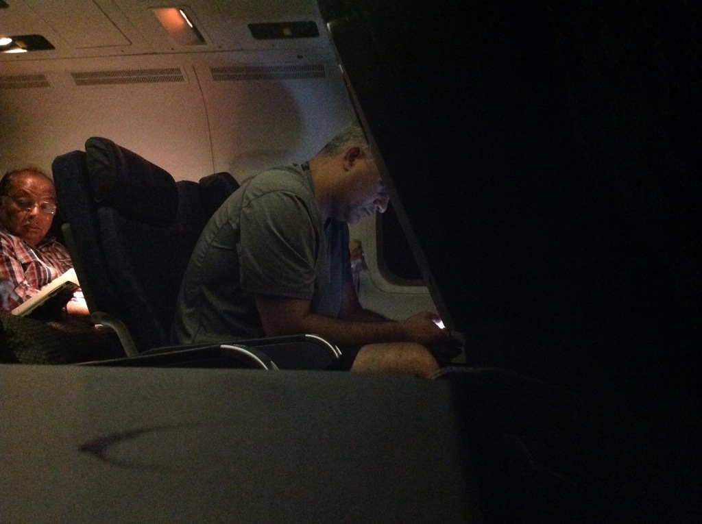 This one makes me crazy. First of all, on a domestic flight outside of sleeping hours, just don’t lean back your seat. Yeah,yeah, you are entitled, but it’s still rude. Airlines have crammed coach seats closer than ever, and really, I don’t want to have the top of your head under my nose. If I had to sneeze right now, the bald man in my lap would be covered in mucus. If my fat self can sleep upright, you can too. Overnight flights…different story.
